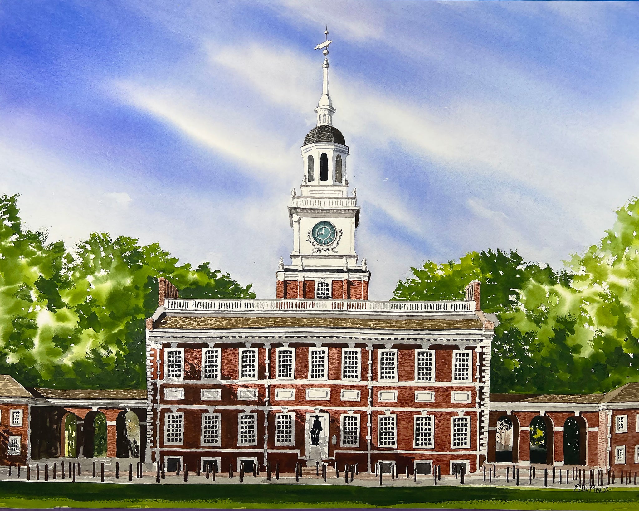 This is a print of an original watercolor painting by Ellie Moniz. Prints are made using high quality, acid free paper and archival inks and displayed in a white mat.